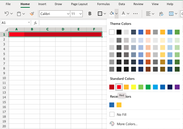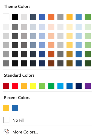 Excel has a set of themes and standard colors available for use. You select a color by clicking it: