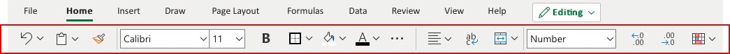 The Ribbon can be expanded by clicking the arrow/caret-down icon on the right side. This gives access to more commands: