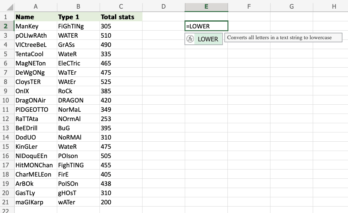 Excel LOWER Function