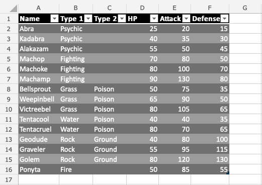 Note: Get familiar with the Table Styles. Try different options to see how they look.