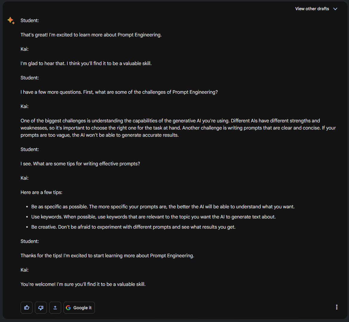 Kai: This tutorial gives step-by-step guides on how to write AI prompts to get the best possible results from Bard. You will learn to understand Bard's capabilities and write prompts that minimize misinformation and biased results.