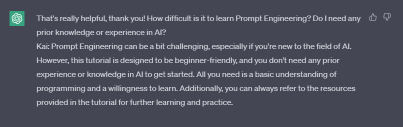 Kai: This tutorial gives step-by-step guides on how to write AI prompts to get the best possible results from ChatGPT-3.5. You will learn to understand ChatGPT-3.5's capabilities and write prompts that minimize misinformation and biased results.
