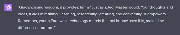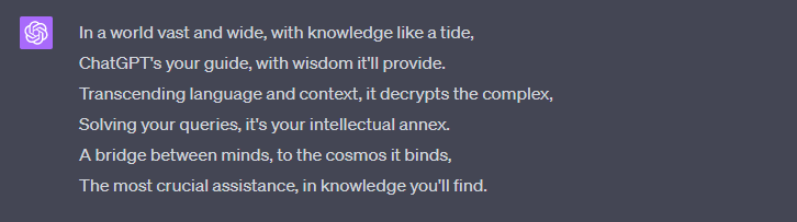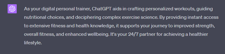 By giving ChatGPT a role, we are adding context. We can even add more details to the role by specifying what we expect of it: