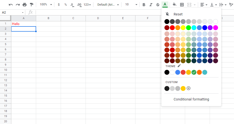 Note: Custom colors are applied in the same way for both cells and fonts. You can read more about it in the Apply colors to cells chapter.