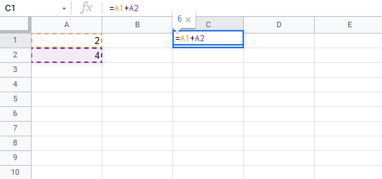 You got it! You have successfully calculated A1(2) + A2(4) = C1(6).