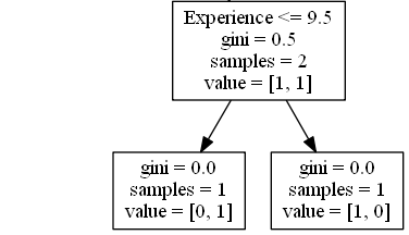 Experience <= 9.5 means that comedians with 9.5 years of experience, or less, will follow the arrow to the left, and the rest will follow the arrow to the right.