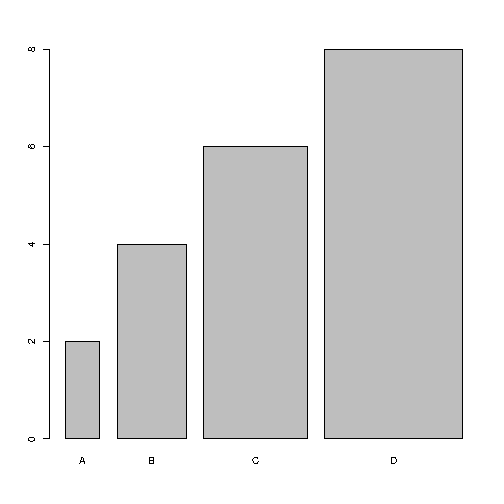 xvariable represents values in the x-axis (A,B,C,D) - The